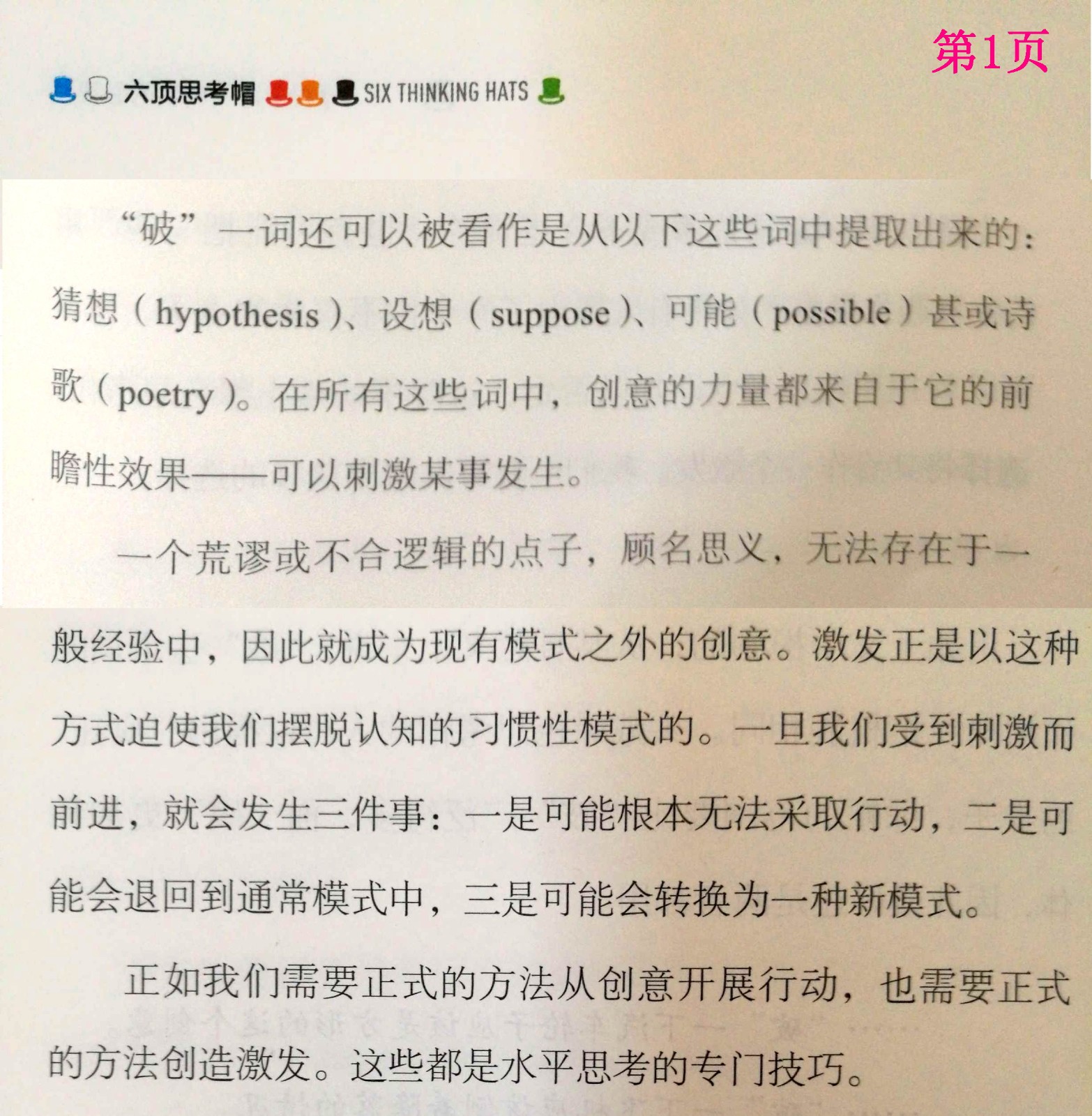 开场: 大家好,我是二级拆书家赵学丽,今天我要进行的TF3-2的拆书,书名是《六顶思考帽》。