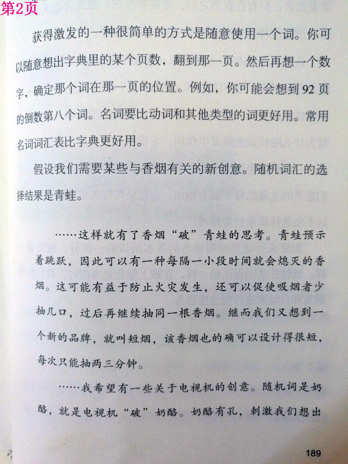 拆书的目的:通过今天的学习,学习者能够学会激发创意的随机词汇法并用5个步骤完成对一个焦点的新创意。