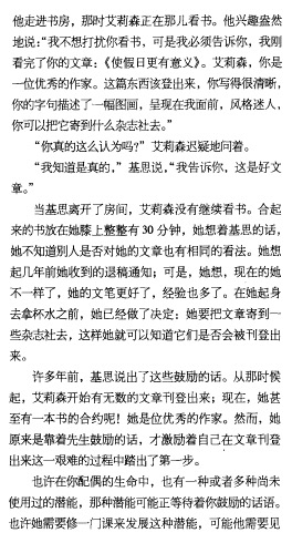 书中的例子中,艾莉森非常具有写作的潜能,但由于一次退稿的经历,再加上结婚生子,所以一直也没有在这方面有所发展。而当孩子大了一些,她有了时间又去开始写作的时候,她的丈夫基思给了他特别大的鼓励:他认真的看他妻子的文字,他真诚的赞赏道:她是优秀的作家。而且详细的描述道:写得很清晰、描述的像眼前有一副画面。他甚至还鼓励她投稿。
