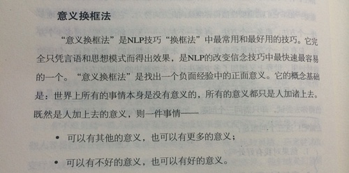 我们一直说情商,情商是什么?也就是情绪管理的能力。智商决定录用,情商决定职位。我们一直困恼于情绪问题,为何不利用这个简单的工具,让自己换个看法,给事物赋予积极的意义,给自己带来积极的情绪。构建和谐社会,从使用意义换框法开始。