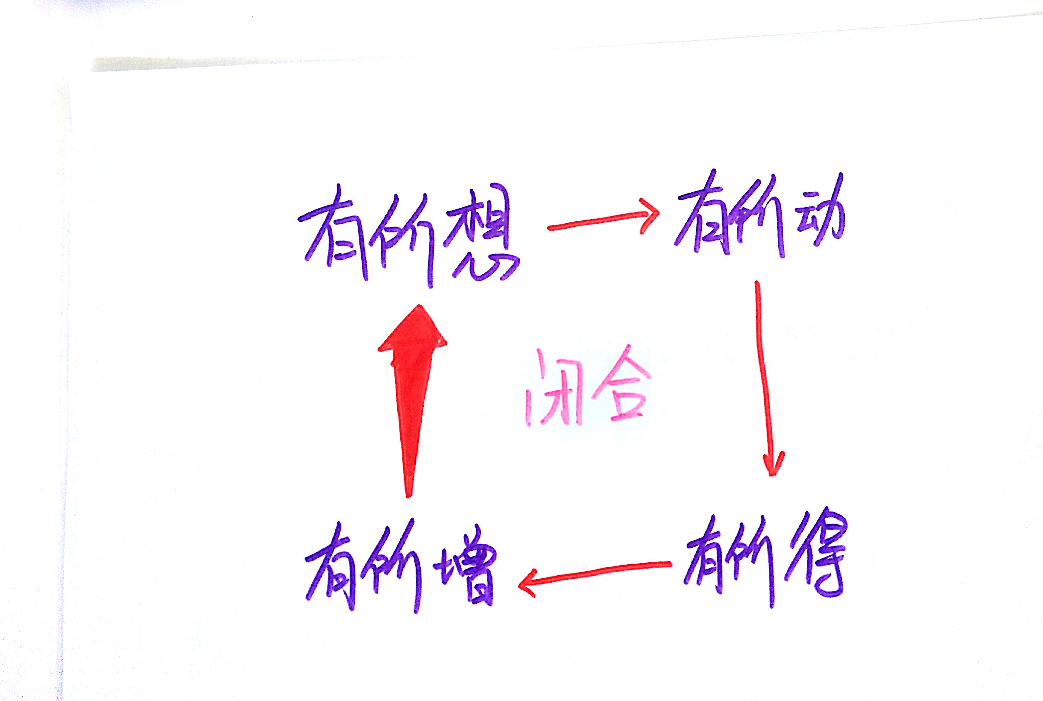 【复述】听了分享,我来复述一下你的案例吧。在我看其实这个也是一个闭合的循环。通过修正以后,“体验冥想”是你的有所想,“每天做一次冥想”是你的有所动,“当你体验过以后觉得够了”就是你的有所得,最后“你觉得你不用在继续冥想了”其实就是一次强化。
