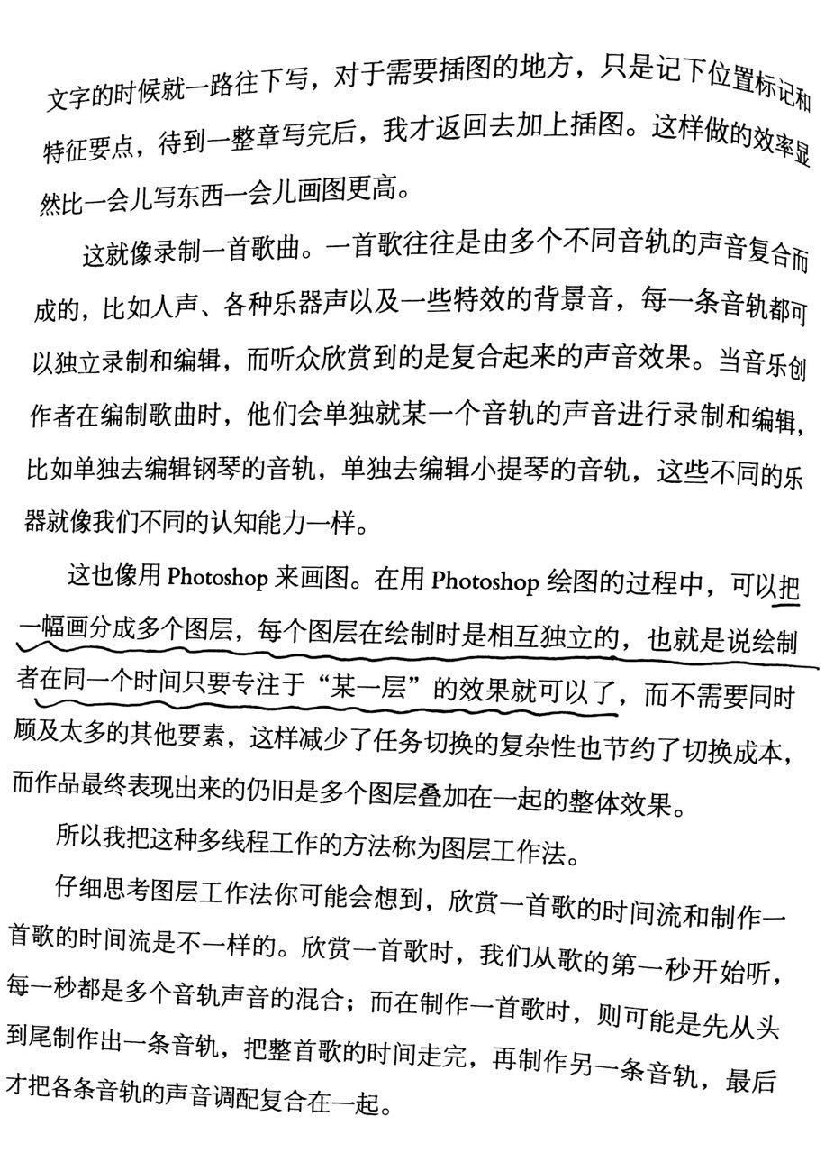 在这个拆页中作者介绍了一种图层工作法,用来分层处理工作,也就是将相同性质的工作批量处理。这样可以尽量减少切换时间,提高效率。