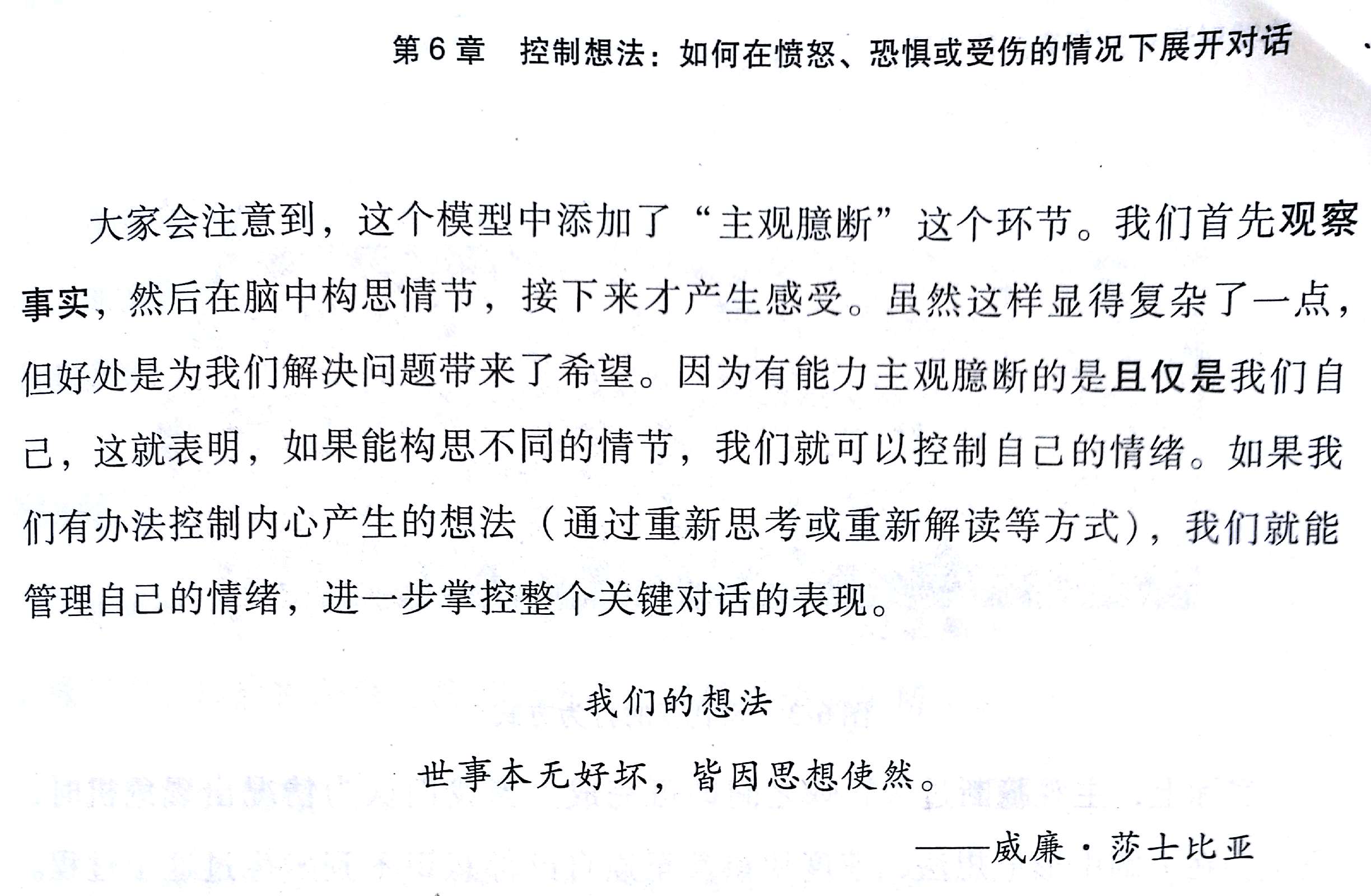 注意书里的那句话:如果能构思不同的情节,我们就可以控制自己的情绪。重新思考或重新解读等方式,我们就可以管理自己的情绪。