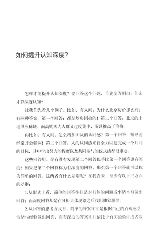为了让我们更明确了解是认知深度,作者举了两个例子,对于同一个问题的两种回答方式的对比,让我们能够理解深度回答,而深度回答是建立在深度认知的基础上的。