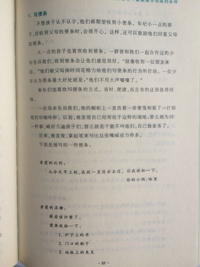 写便签的时候,可以安排孩子做力所能及的家务,可以是通知,可以是警告、还可以是对要爆发的冲突的一种沉默的处理。