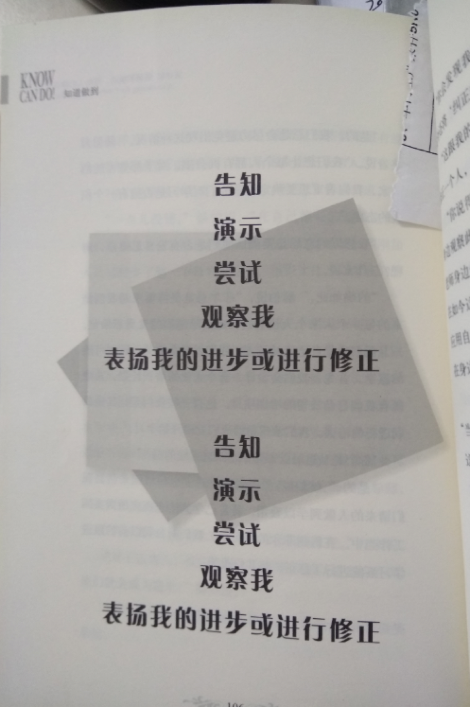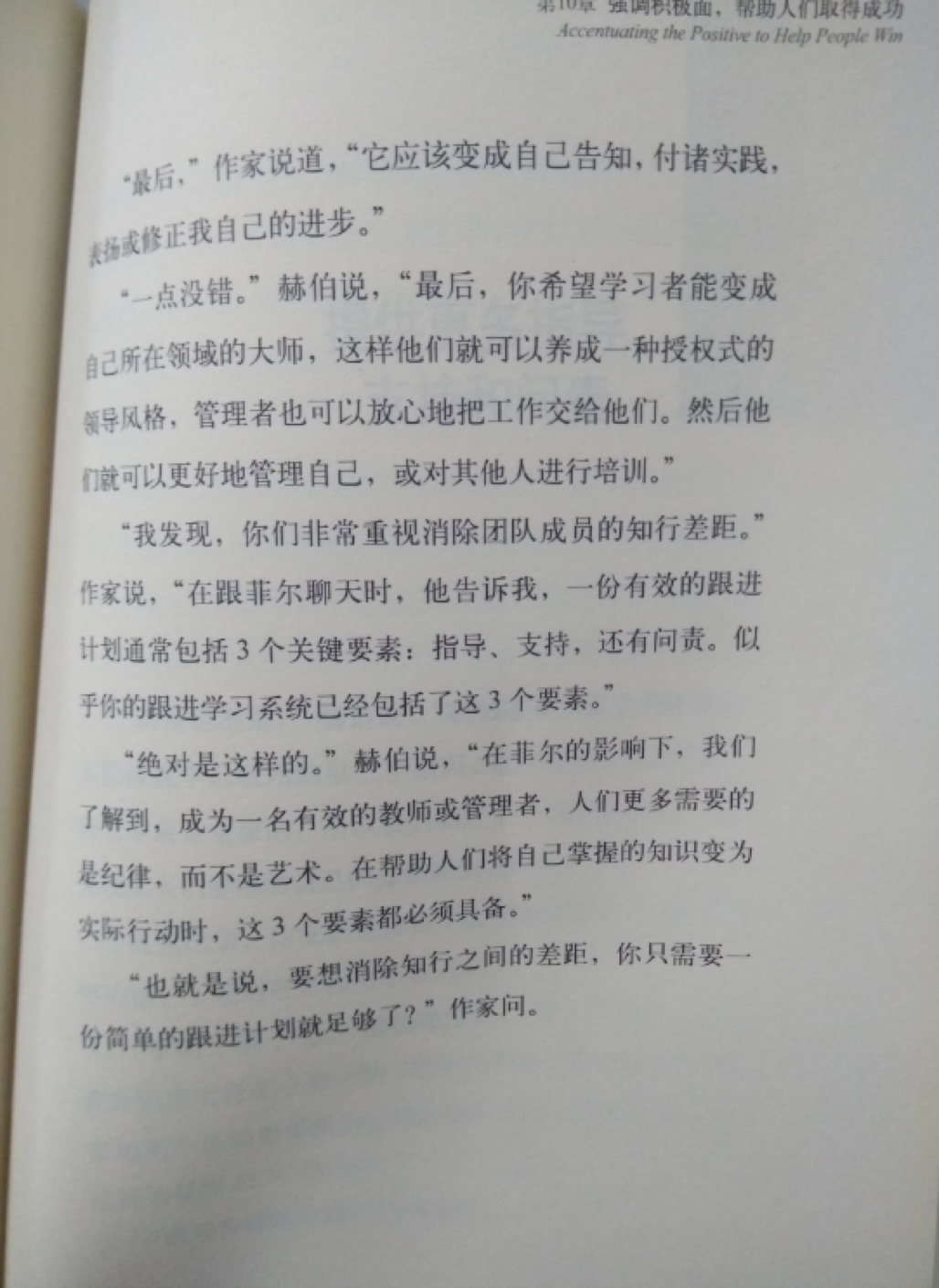 这其实就是一份跟进计划所要包含的内容。书中其它部分还提到,这样的跟进应该不断的被重复。效果才会达到预期才能真正的将知变成行;