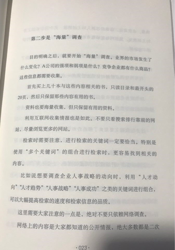 这里讲的“情报搜集”其实指的是工作前期的调研工作。调研工作包含了对于工作的需求分析,从我们的经验发现,调研工作做得越全面越有深度,你的工作就越有质量。如何做好工作调研呢?主要有三步: