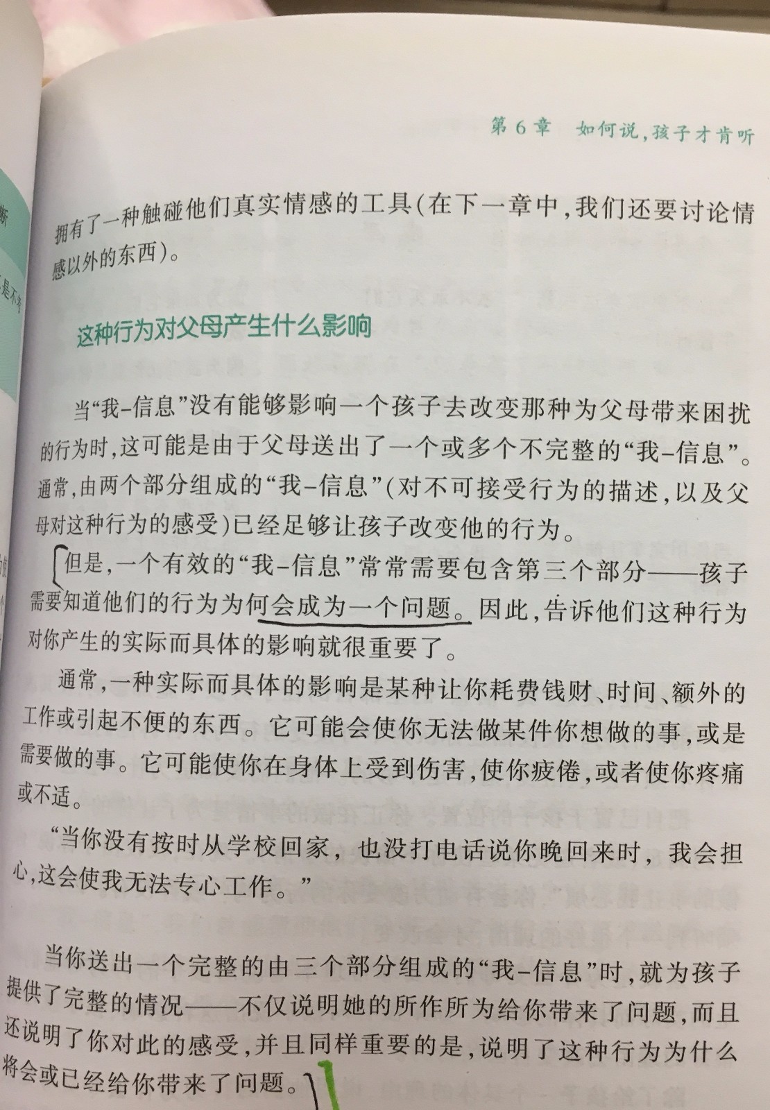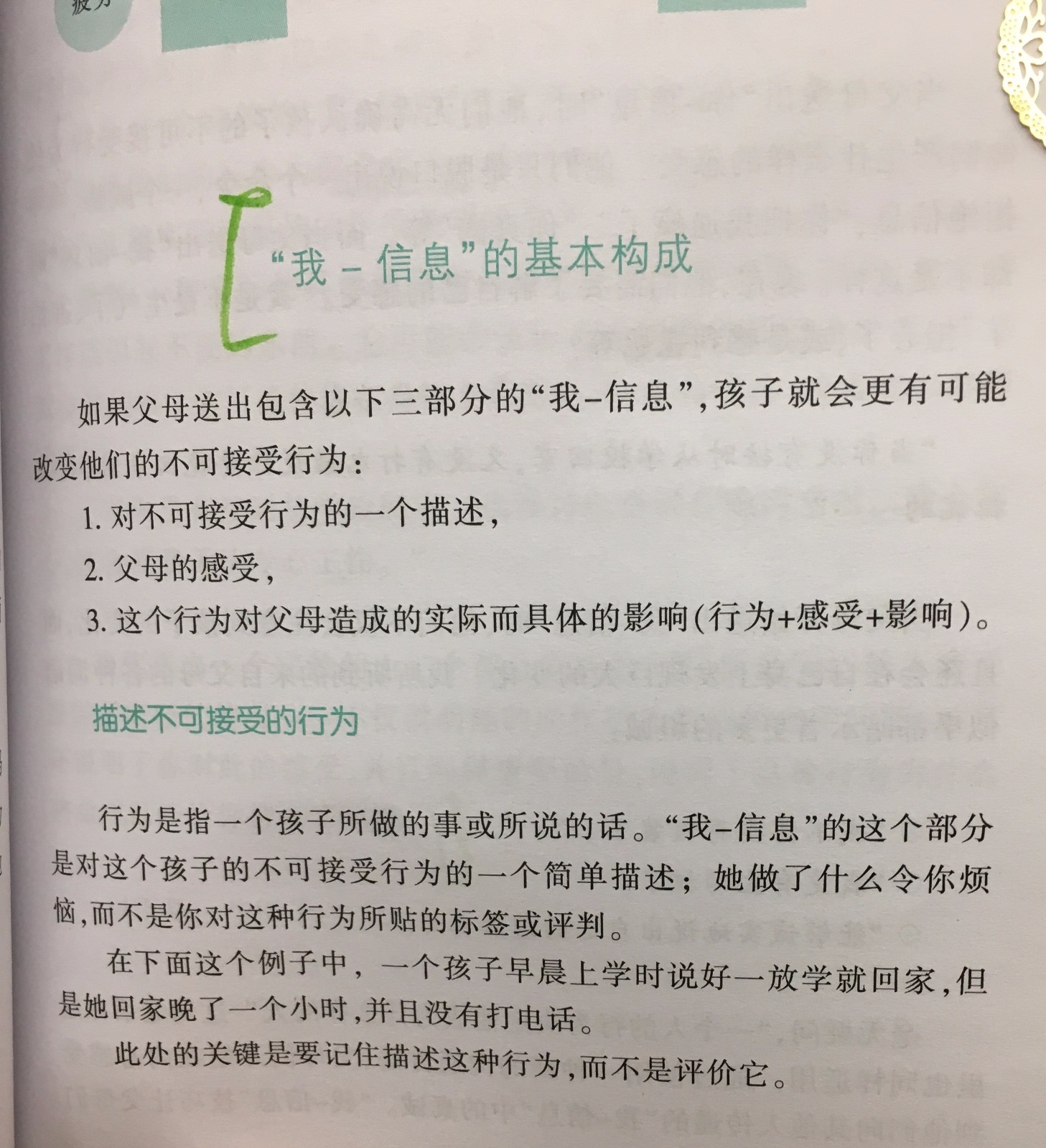 其实不光是亲子沟通,在与父母之间、爱人之间、同事之间,朋友之间的沟通,很多时候运用“我信息”的沟通方式可以减少很多纷争,帮助双方更有效地集中在问题的解决上,更利于和谐关系的建立。