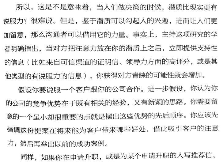 第一个片段,说服他人做决策,两步法:描述潜质,摆出事实。