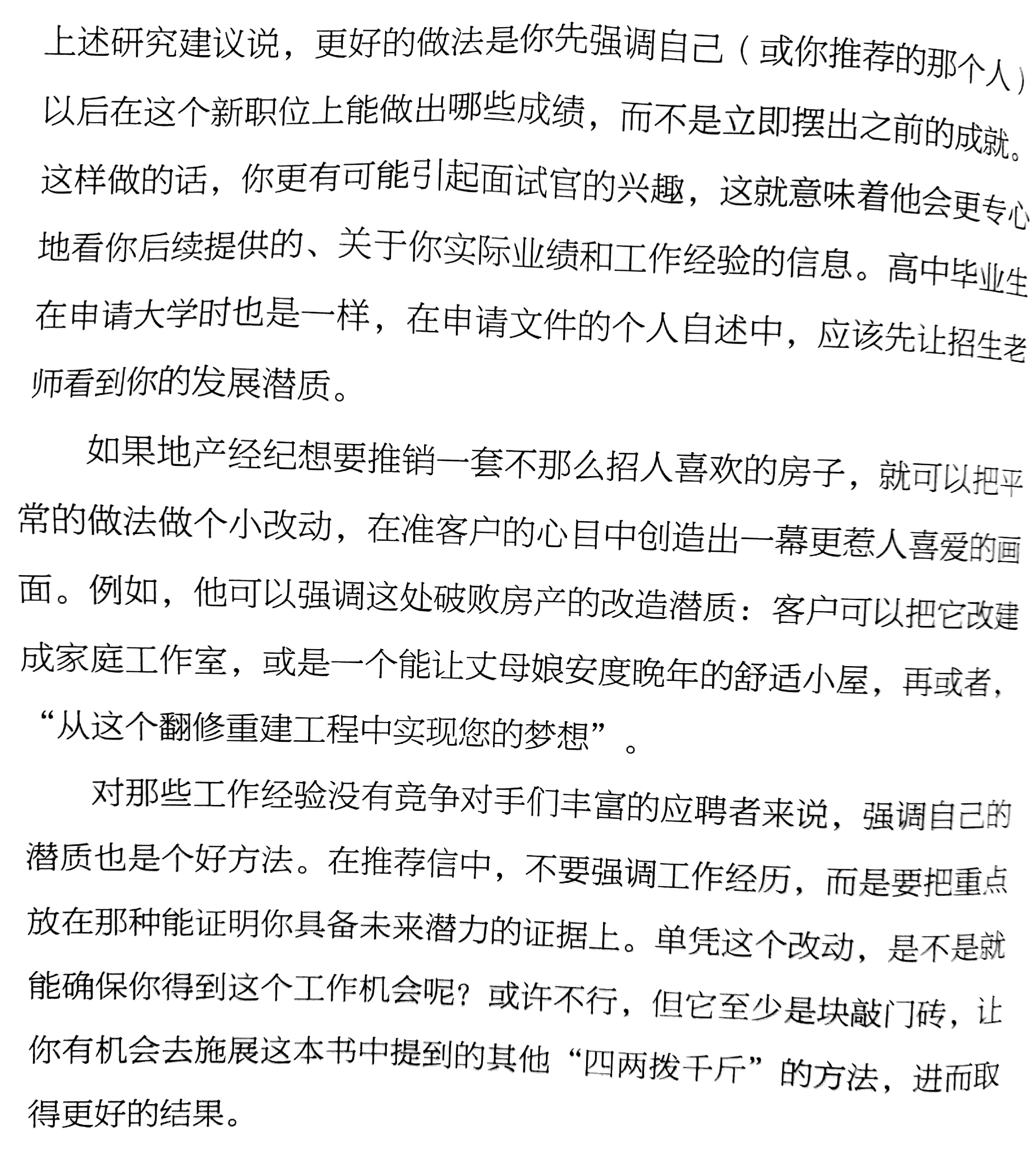 可能有些小伙伴会有一些疑问,一开始描述潜质,画蓝图,会不会显得假。实际上,描述潜质并不等于自吹自擂,是把自己能带来的价值提前提炼出来,具象化,之后再以一些事实证明,这样反而更能打动人心。
