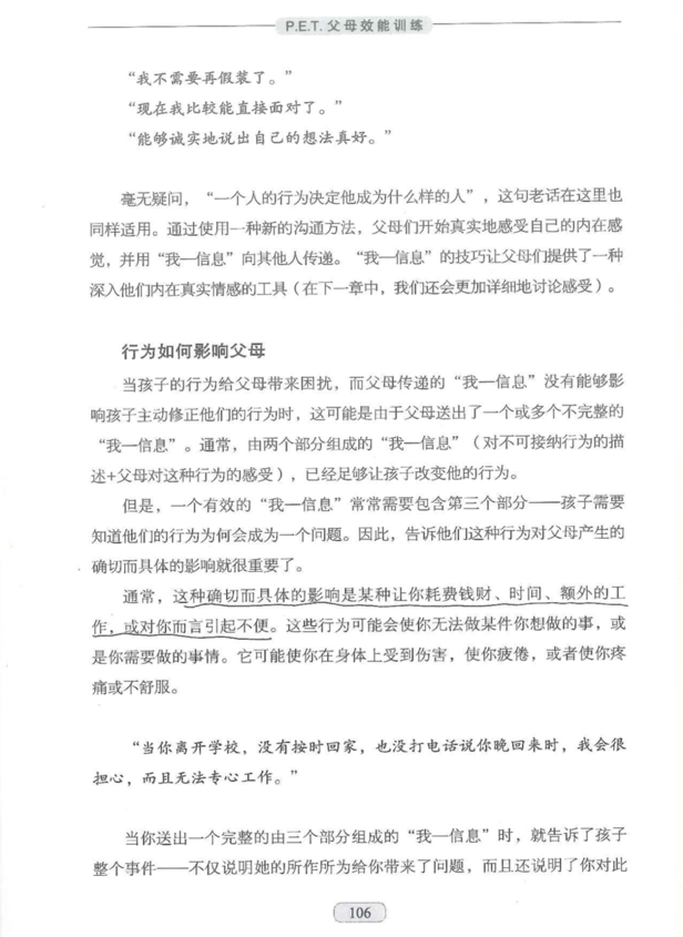 解决:《PET父母效能训练》从如何听,孩子才会说,如何说孩子才会听,这两个方面,给父母提供了有效的沟通技巧,让亲子之间的沟通变得高效,简单。