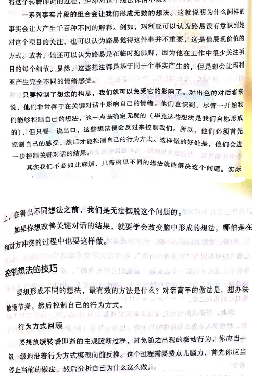 【适用范围】这个方法不仅适用于在沟通中推进关键对话的进行,当你在日常生活和工作中,陷入消极情绪,失去行动动力时,也可以使用这个方法来改变自己的消极想法,进而积极行动。如果你不在意对方和你的关系或者认定对方就是个坏人,那么这个方法对你来说就是不适用的。
