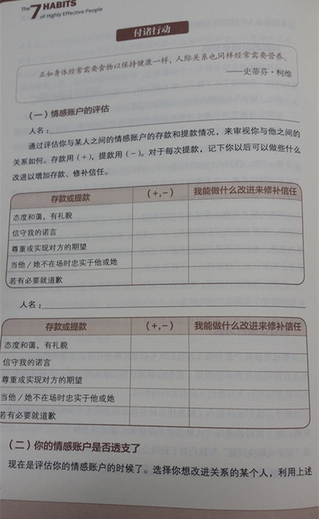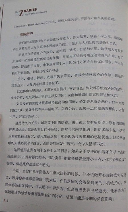 请大家翻看P214 - P215,关于“情感账户”的片段,以及“你的情感账户是否透支了”