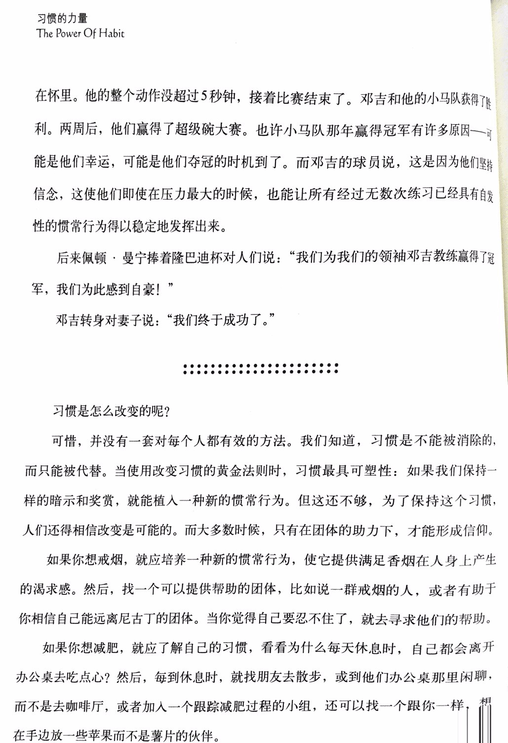 当然,就像片段里说的一样,没有一套对每个人都有效的方法,而且有些习惯容易分析,有些习惯却非常复杂(比如一些思维、情绪,高效能人士的七个习惯很多人都读过,但是有几个人把消极思维转变成积极思维了呢)。但是今天这两个片段的意义在于让我们清楚习惯的原理,并且提供了被很多研究人员认可的方法,改变可能不会很快,而且不容易,但是只要付出时间和努力,几乎所有的习惯都是可以改变的。