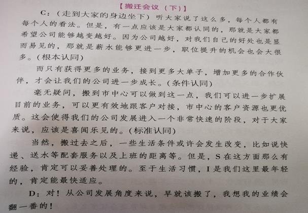 第一步,找共同对象,说好处。从不同意见中找出谈话共同针对的对象,并描述谈话者对对象的共同期望,最重要的是说明达到共同期望后可以给谈话者带来的好处。比如片段中大家谈话共同针对的对象是公司,共同期望是希望公司越来越好。好处是薪水更多,升迁机会更大。