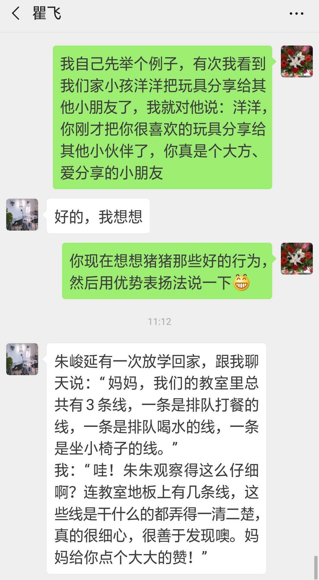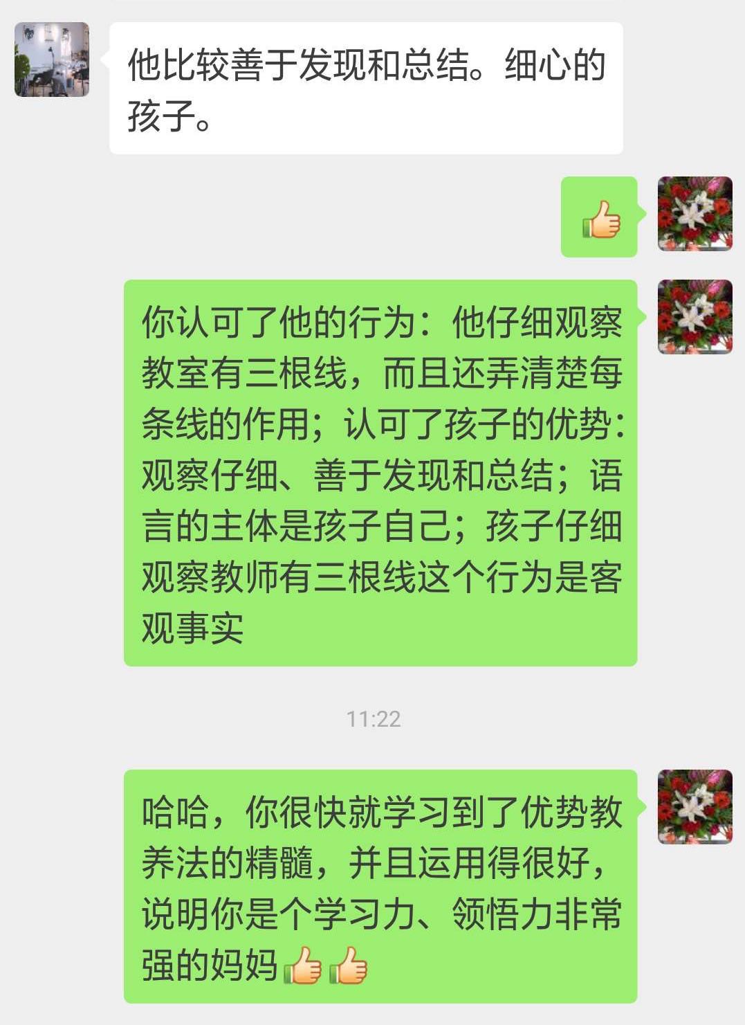 森森:我听完你说的话,能很清楚地知道什么样的行为是好的,我可以继续保持怎样去做。