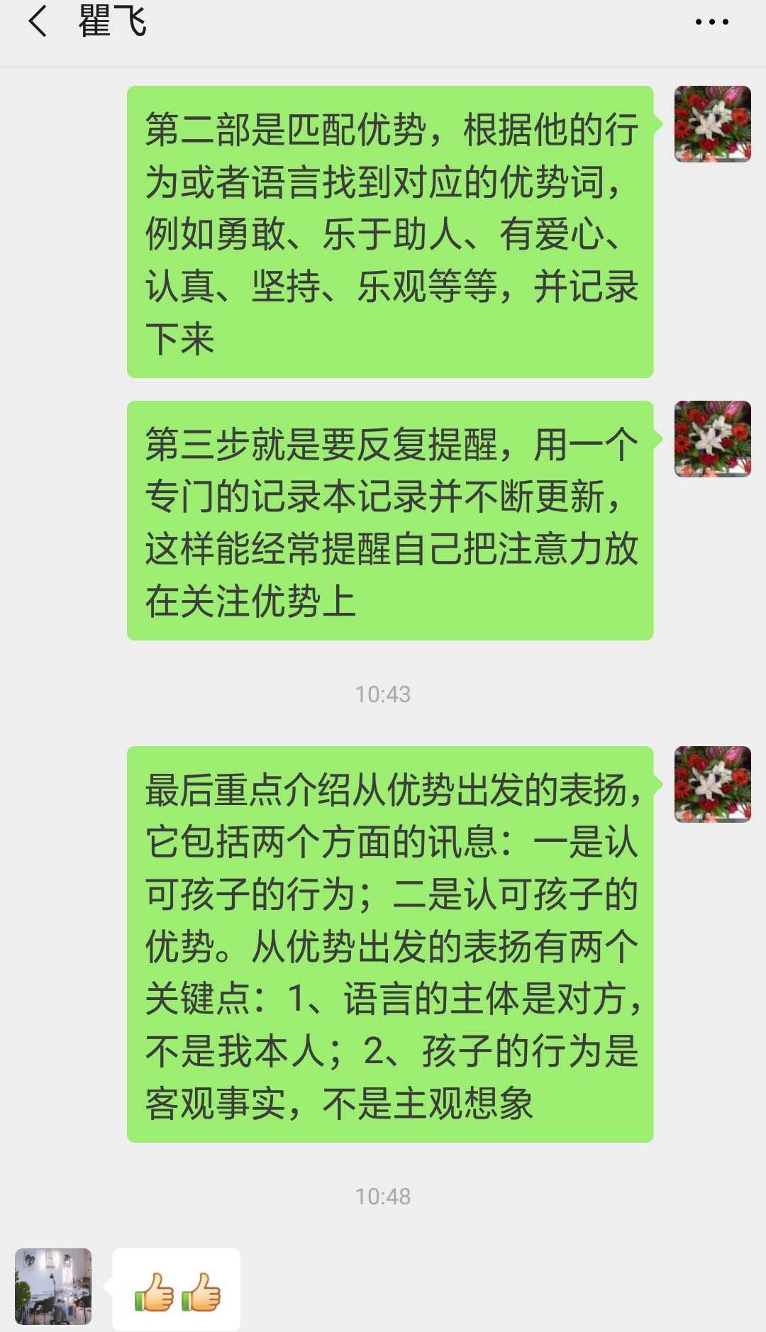 1、先体验,找做个做过类似行为的人去体验下,体验下这样做的好处,比如找佩璇体验下“被优势出发的表扬”。