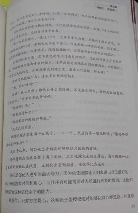 明确奖惩:有父亲来监督,完成了就有零用钱,未完成,书中没有明确的惩罚,但却会是情感账户的减分,因为柯维极度失望;