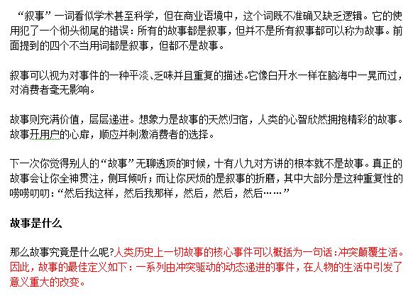 在我的拆页里面,有两个部分:一个部分是故事的定义,一个部分是故事设计的八个阶段。我现在先来讲解一下故事的定义,如果一个短文里面的内容波澜不惊,那不算一个故事,或许那只是对一件事情来龙去脉的陈述。如果是故事,那这个故事的内容一定是曲折向前的,这样才能够抓住读者的注意力,而且结局需要是观众喜闻乐见的,千万别以一个悲剧的结尾收场。