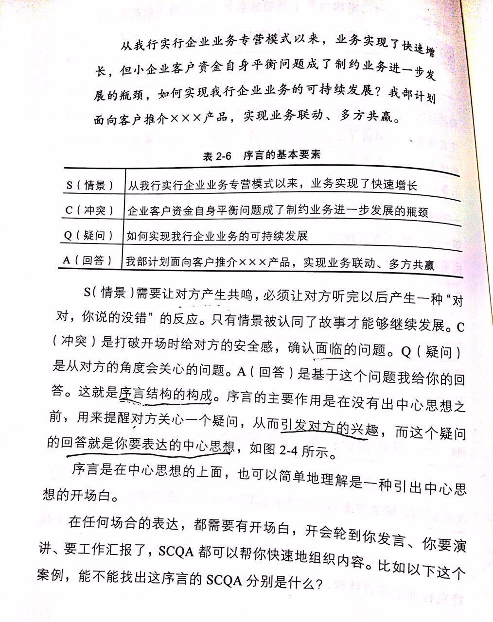 大家都会用SCQA结构来设计序言了,那么布置大家一个作业,请为《这样读书就够了》里面的RIA便签读书法写一个SCQA结构的序言,并在3天内分享在我们的微信群众。作业要求是否清楚?好的,谢谢大家。