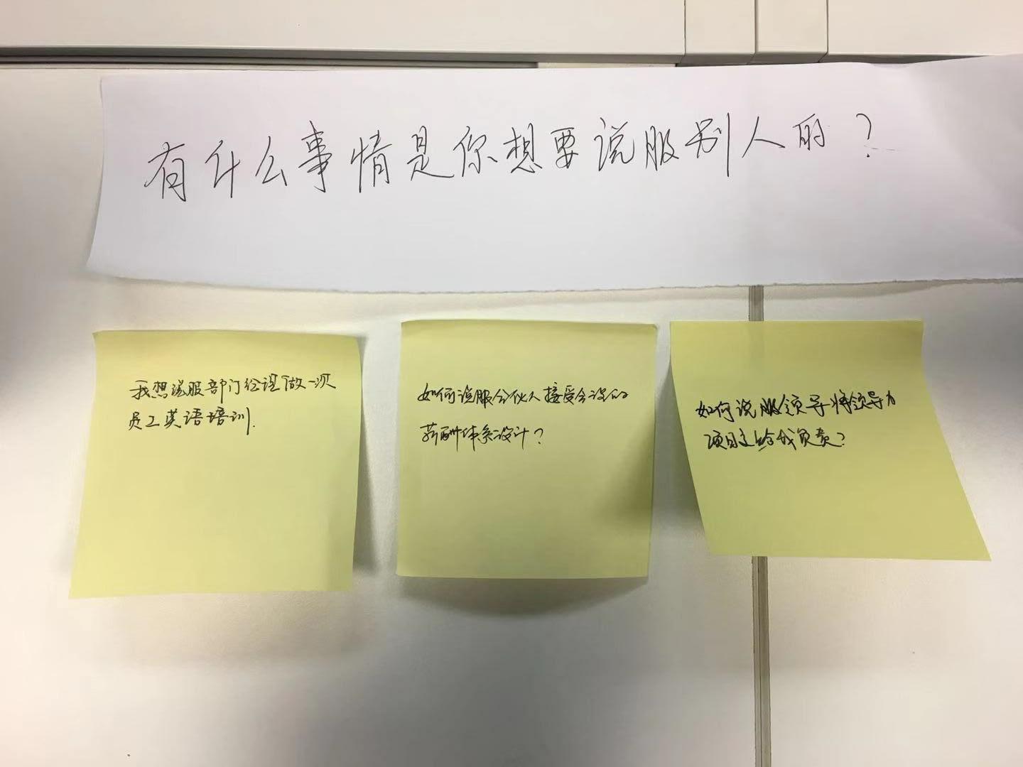 现在请大家思考一下,回到工作生活中,是否也有需要说服她人的事情呢?每人写一个。
